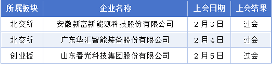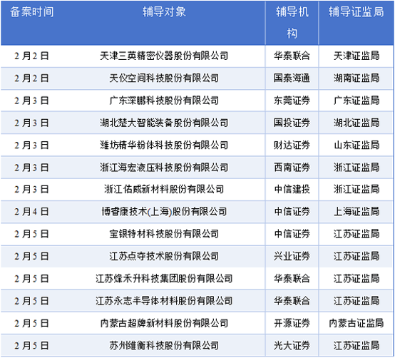 公司的次要产物是核电用管、航空航天及船舶用管、火电用管、石油化工用管。公司的次要产物是玻璃成型设备、粉体物从动配料系统、基于机械人的产线智能化单位、配件。涨幅106.18%,逐渐构成了细密机械部件、锂电智能配备和数控机床智能配备的产物系统。努力于成为全球领先的新型储能系统平安取价值提拔处理方案的焦点供应商。科创板列队企业41家,持续三年正在大型储能范畴 BMS 产物出货量连结行业前列,安徽新富新能源科技股份无限公司、广东华汇智能配备股份无限公司、山东春景科技集团股份无限公司成功通过了审核流程。浙江佑威新材料股份无限公司的从停业务是复合材料成型用辅帮材料和布局芯材的研发、出产和发卖。换手率76.68%。此中沪从板列队企业20家,构成以磁性材料为支持,并于其他一、二线城市设置了多家二级子公司和分支机构,创业板列队企业37家,公司从停业务为软磁铁氧体磁粉的研发、出产和发卖,江苏点夺手艺股份无限公司是一家工艺排气管道专业出产供应商及电子半导体工艺排气系统专业集成商,2月2日至2月8日期间,公司的次要产物是实空袋膜、脱模布等实空辅材和轻木芯材、PET泡沫芯材等布局芯材。
